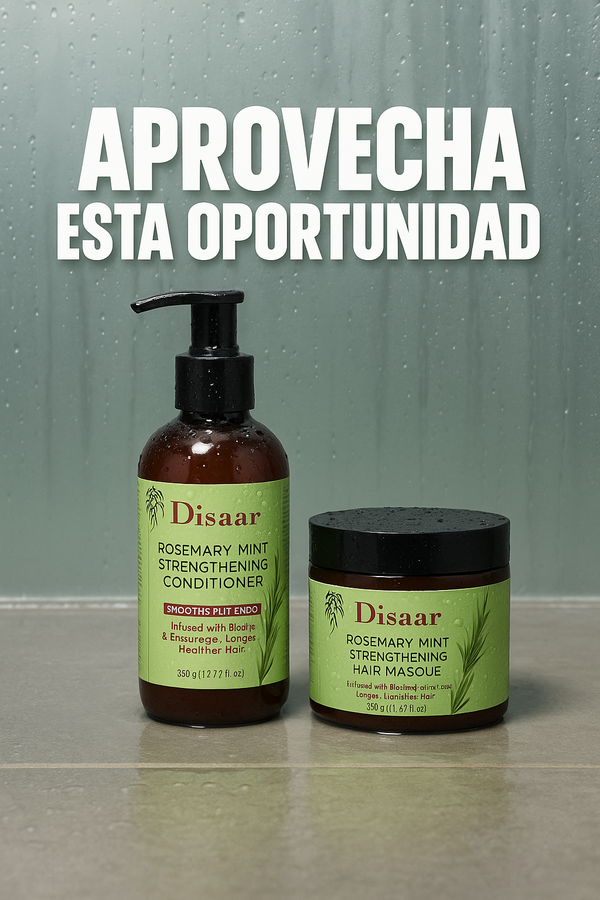 Prueba el Kit de Cuidado Disaar sin preocupaciones. Si no estás satisfecho con los resultados, ofrecemos una garantía de devolución de dinero de 30 días. Descubre un cabello más fuerte y saludable con nuestra colección de romero y menta.